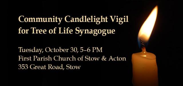 The Board of Trustees invites you to join fellow FPC members and friends in a vigil on the lawn in front of FPC. We will hold this vigil in honor of the Tree of Life Synagogue in Pittsburgh PA who lost 11 precious members to a violent shooter on Saturday. Please feel free to bring a candle; if you don't have one, we will have one waiting for you. Please join us in pain and in healing.